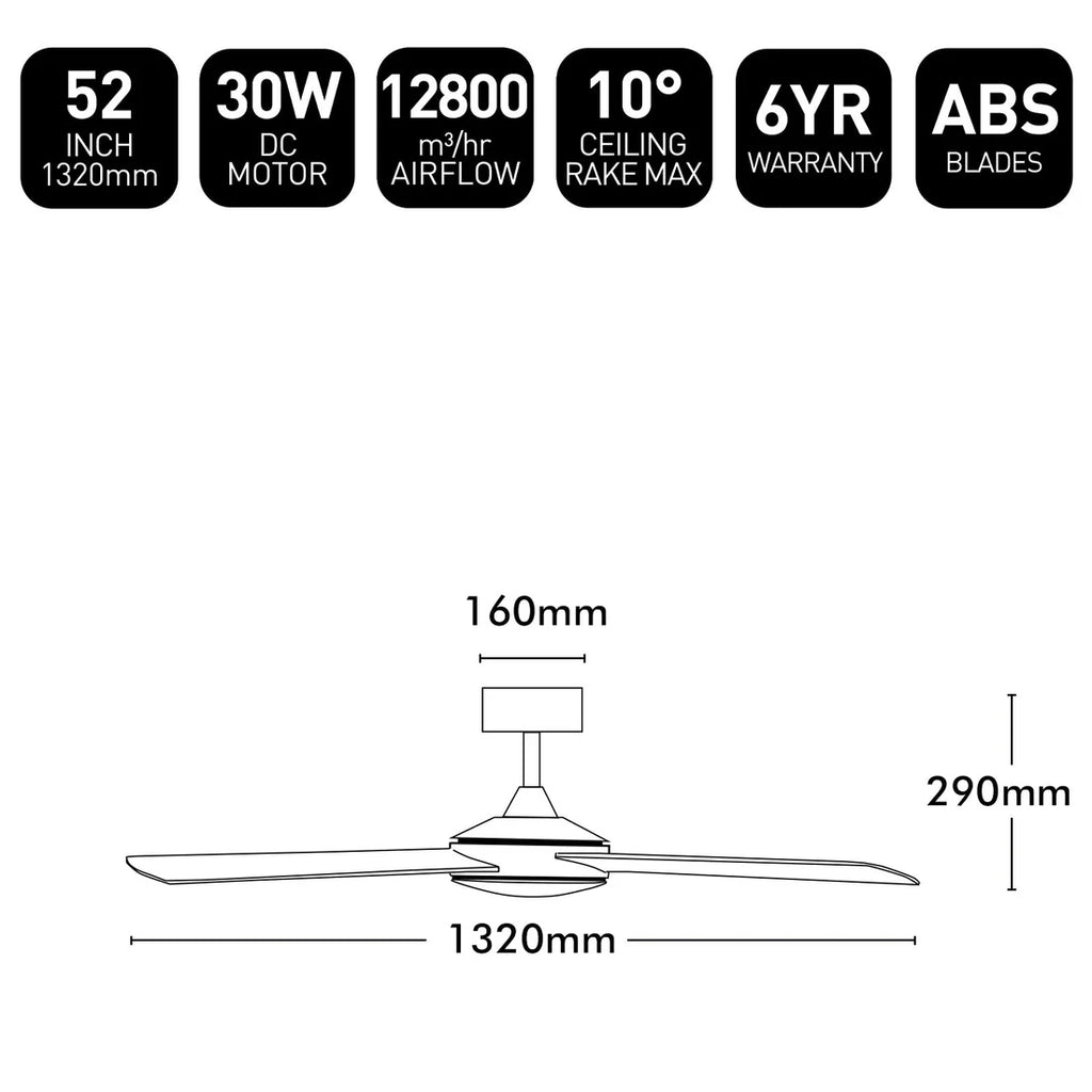 The popular Tempest ceiling fan now comes with all-ABS construction and an energy-efficient DC motor with 6-speed control. Designed to suit electricians with its easy blade assembly, pre-assembled motor body & large top canopy. The perfect all-rounder for your home.