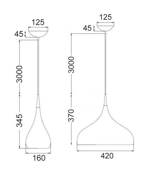 | ZARA3A | PENDANT ES 60W S/N BELL OD160mm x H345mm 3m cable WTY 1YR |