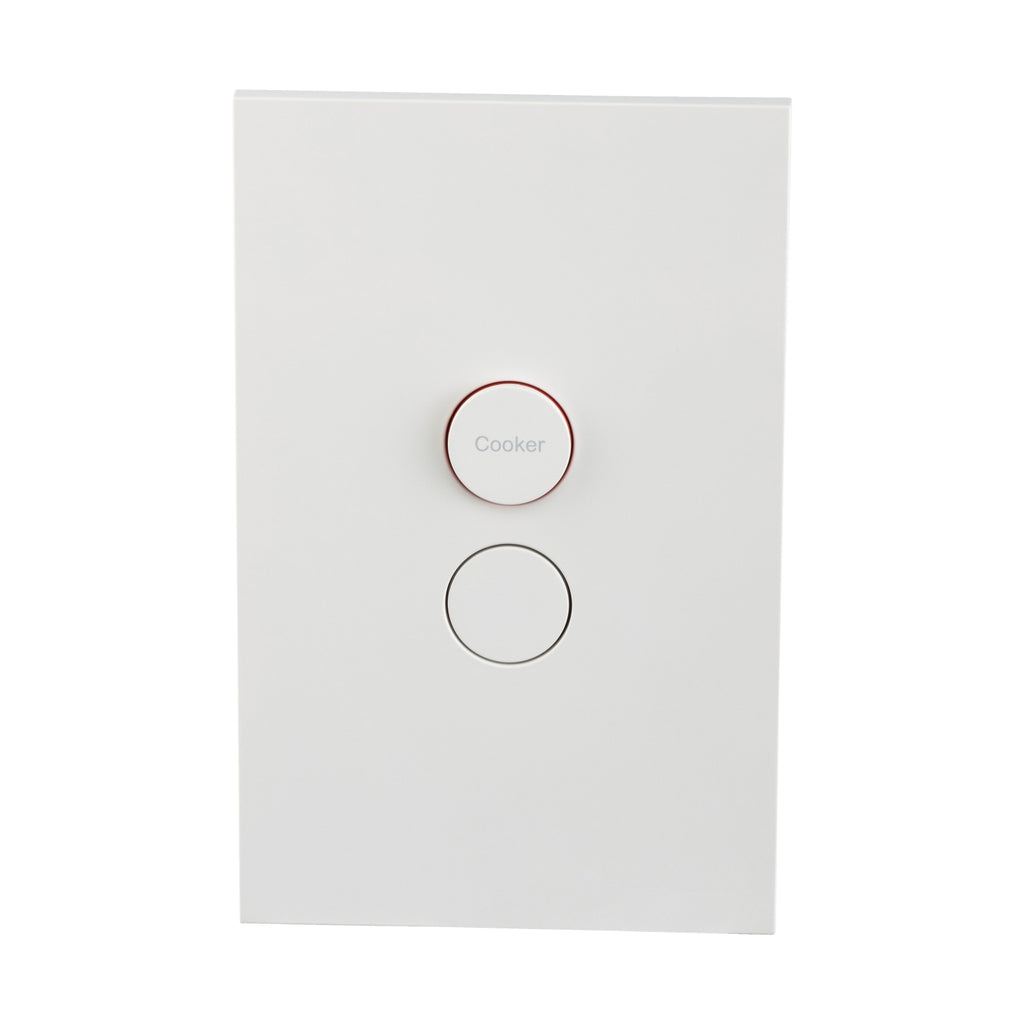 Add class to your kitchen with Saturn Zen switches, including this Saturn Zen Single Pole Cooker Switch. 45A and 250V, this particular Cooker Switch controls just one circuit. The switch features a coloured indicator to let you know when the switch is in use.