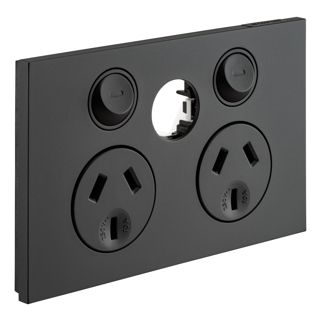 With the option to include a labelled extra switch, the Clipsal Saturn Zen Double Switched Power point is perfect for areas where you need to plug in two appliances, as well as activate lighting, a fan, heater, cook top or oven. Choose the extra switch that best suits your needs.