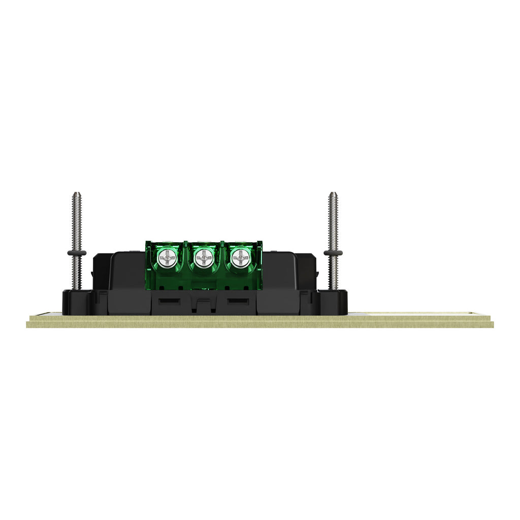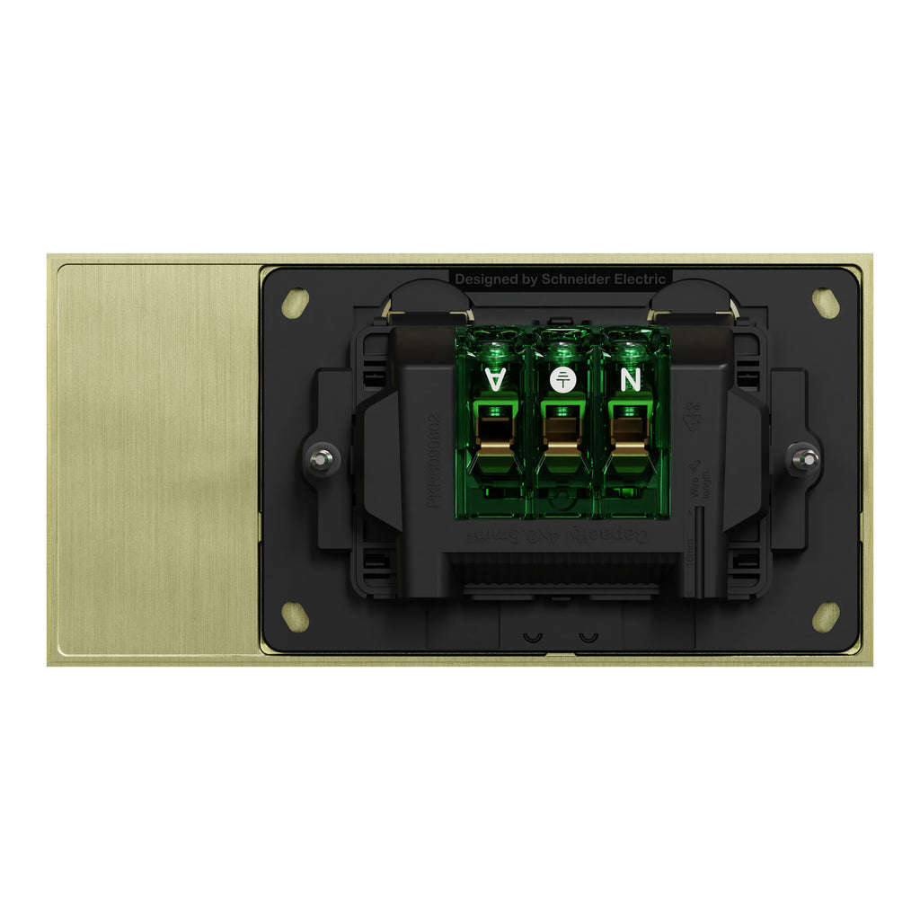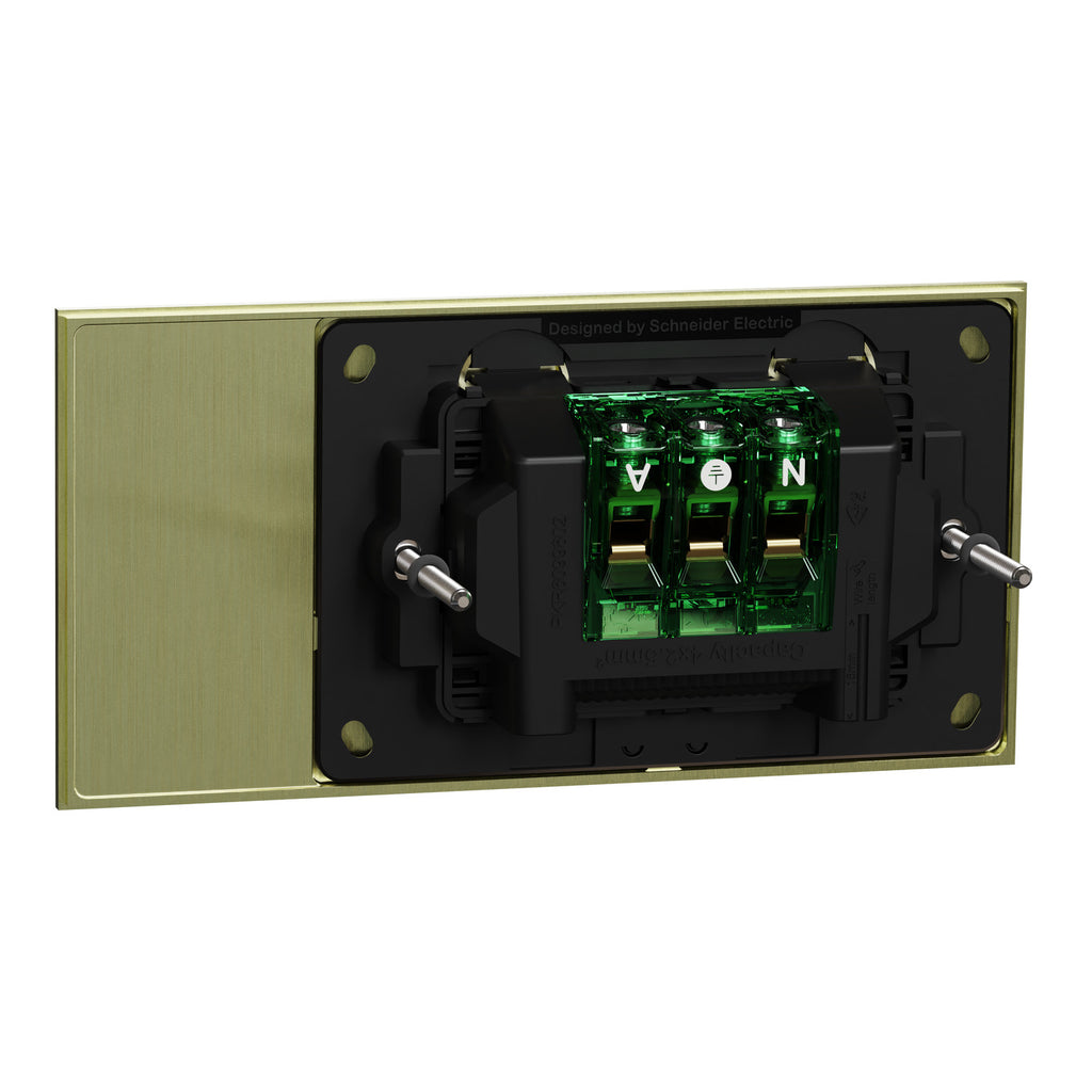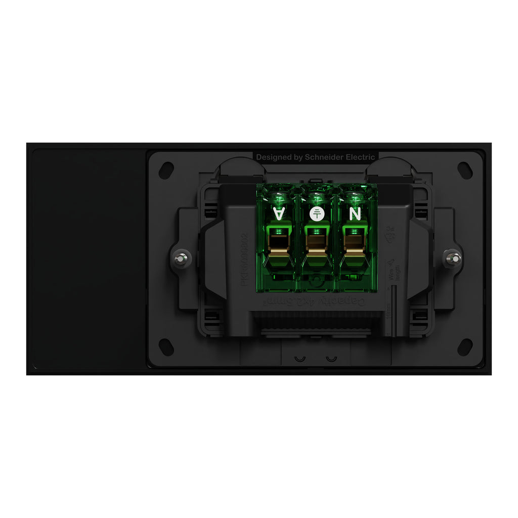 The Clipsal Solis T Series double-switched socket is designed for use in residential, commercial, and hotel applications. This socket outlet is designed to meet Australian/New Zealand standards and has a 2P + E pole configuration. The rated current is 10A and the rated operational voltage is 230/240VAC. The device comes with a screw terminal that offers a more secure connection for larger wires, reducing the risk of loose wires caused by external factors. This device allows for flush mounting. Screws are available for installation. The socket has a shutter that prevents the insertion of objects other than plugs for safety purposes. It is intended to be installed horizontally only. The dimensions are (W) 148mm x (H) 74mm x (D) 27.4mm, and the embedding depth is 23.5mm. Discover the perfect fit with a 84mm fixing center and 5mm thickness for seamless integration into your projects. The color of the product is ebony aluminium. Its operating temperature is from 0°C to 45°C. Choose from modern high-end finishes such as ceramic white, living brass, and recycled aluminum in platinum or ebony for contemporary home spaces with the Clipsal Solis T Series range. Create aesthetically pleasing electrical designs that complement your style.