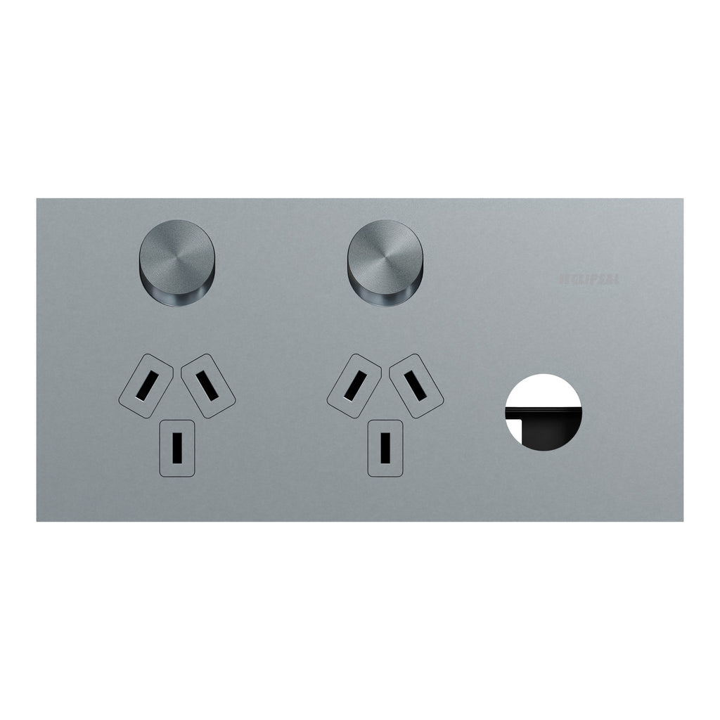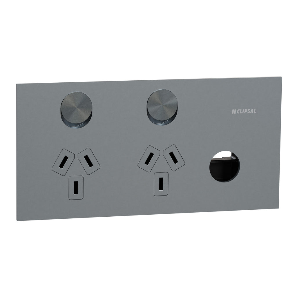 Clipsal Double Switch Power Point, Clipsal Solis T Series, Horizontal Mount Platinum 230V-240V- 1025XUA-PT