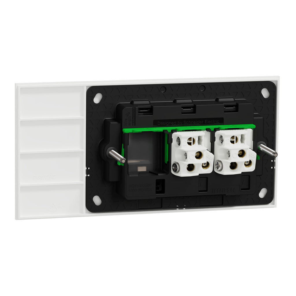 The Clipsal Solis switch is designed to meet the needs of residential, commercial, and hotel applications. This 2-gang push-button switch offers convenient 1-pole 1/2-way control. The rated current is 20A/16AX and the rated operational voltage is 230/240VAC. The device comes with a screw terminal that offers a more secure connection for larger wires, reducing the risk of loose wires caused by external factors. This device allows for flush mounting. Screws are available for installation. It is intended to be installed horizontally only. The dimensions are (W) 148mm x (H) 74mm x (D) 45.5mm, and the embedding depth is 41mm. Discover the perfect fit with an 84mm fixing center and 4.5mm thickness for seamless integration into your projects. The color of the product is matt black. Its operating temperature is from 0°C to 45°C. The Clipsal Solis range now offers a choice of contemporary white and black finishes for modern home spaces. Create aesthetically pleasing electrical designs that complement your style.