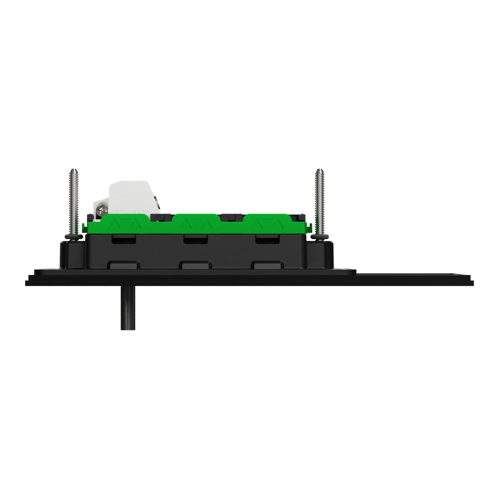The Clipsal Solis T Series switch is designed to meet the needs of residential, commercial, and hotel applications. This switch allows for controlling one circuit with a single toggle switch. It is designed for use in one location, with the ability to operate the circuit from one or two locations. The rated current is 20A/16AX and the rated operational voltage is 230/240VAC. The device comes with a screw terminal that offers a more secure connection for larger wires, reducing the risk of loose wires caused by external factors. This device allows for flush mounting. Screws are available for installation. It is intended to be installed horizontally only. The dimensions are (W) 148mm x (H) 74mm x (D) 56mm, and the embedding depth is 41mm. Discover the perfect fit with an 84mm fixing center and 3.6mm thickness for seamless integration into your projects. The color of the product is ebony aluminium. Its operating temperature is from 0°C to 45°C. The Clipsal Solis range now offers a choice of contemporary white and black finishes for modern home spaces. Create aesthetically pleasing electrical designs that complement your style.