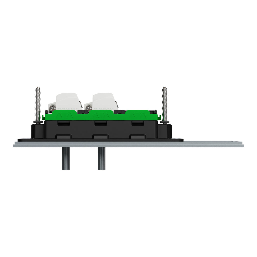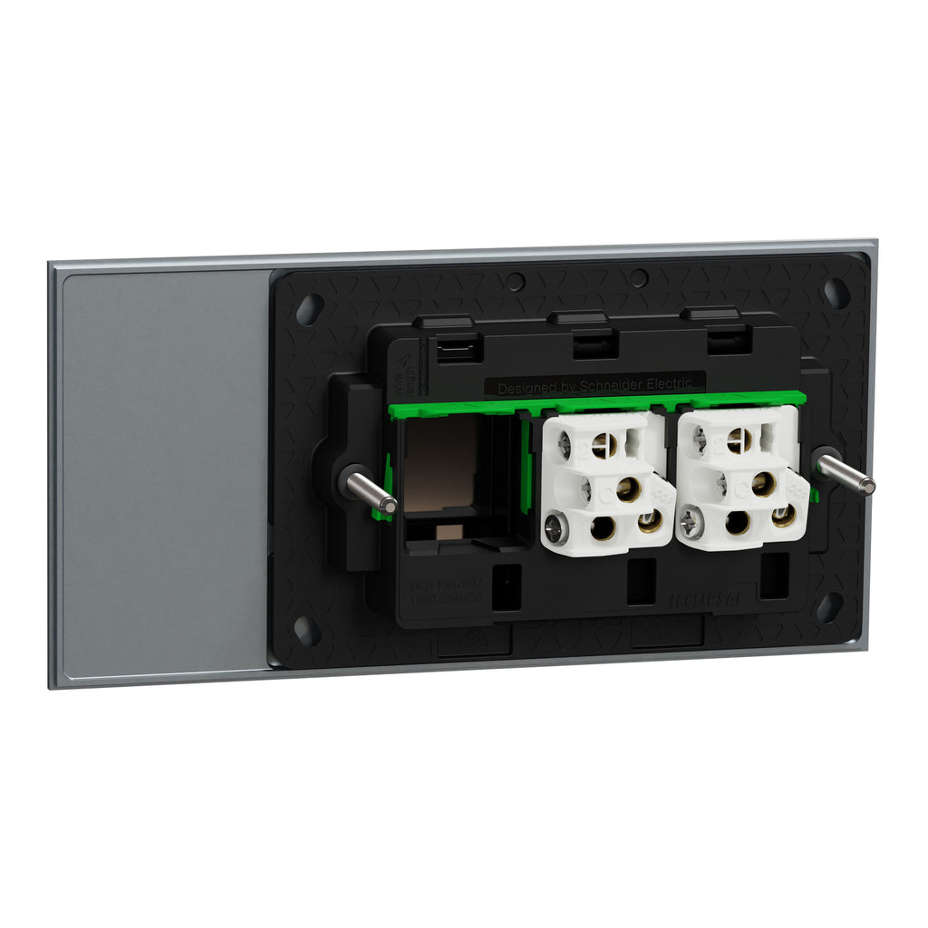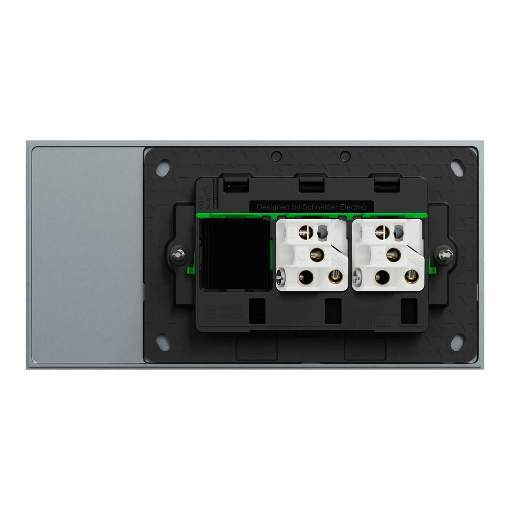 The Clipsal Solis T Series switch is designed to meet the needs of residential, commercial, and hotel applications. This 2-gang toggle switch offers convenient 1-pole 1/2-way control. The rated current is 20A/16AX and the rated operational voltage is 230/240VAC. The device comes with a screw terminal that offers a more secure connection for larger wires, reducing the risk of loose wires caused by external factors. This device allows for flush mounting. Screws are available for installation. It is intended to be installed horizontally only. The dimensions are (W) 148mm x (H) 74mm x (D) 56mm, and the embedding depth is 41mm. Discover the perfect fit with an 84mm fixing center and 3.6mm thickness for seamless integration into your projects. The color of the product is platinum. Its operating temperature is from 0°C to 45°C. The Clipsal Solis range now offers a choice of contemporary white and black finishes for modern home spaces. Create aesthetically pleasing electrical designs that complement your style.