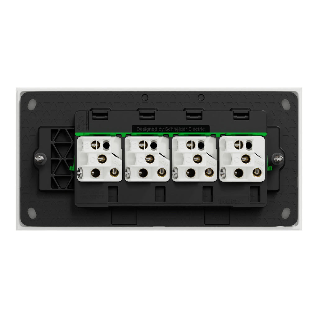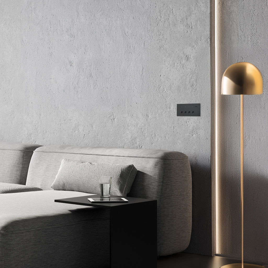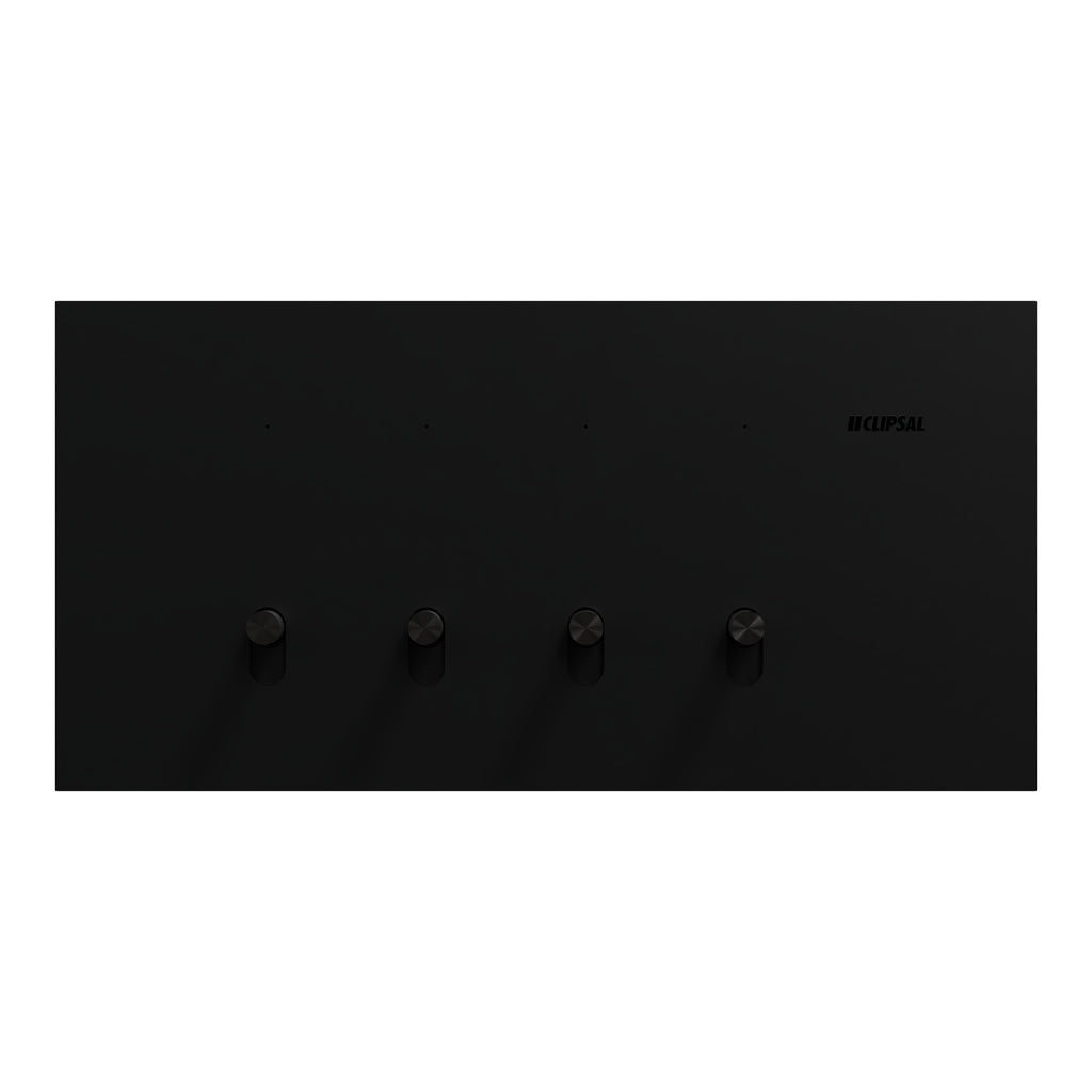 The Clipsal Solis T Series switch is designed to meet the needs of residential, commercial, and hotel applications. This 4-gang toggle switch offers convenient 1-pole 1/2-way control. The rated current is 20A/16AX and the rated operational voltage is 230/240VAC. The device comes with a screw terminal that offers a more secure connection for larger wires, reducing the risk of loose wires caused by external factors. This device allows for flush mounting. Screws are available for installation. It is intended to be installed horizontally only. The dimensions are (W) 148mm x (H) 74mm x (D) 56mm, and the embedding depth is 41mm. Discover the perfect fit with a 120mm fixing center and 3.6mm thickness for seamless integration into your projects. The color of the product is ebony aluminium. Its operating temperature is from 0°C to 45°C. The Clipsal Solis range now offers a choice of contemporary white and black finishes for modern home spaces. Create aesthetically pleasing electrical designs that complement your style.