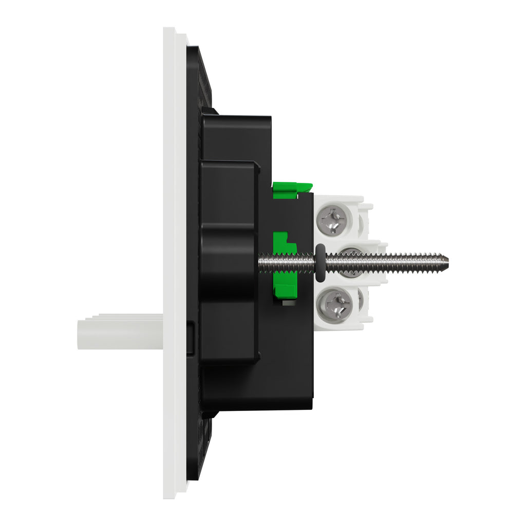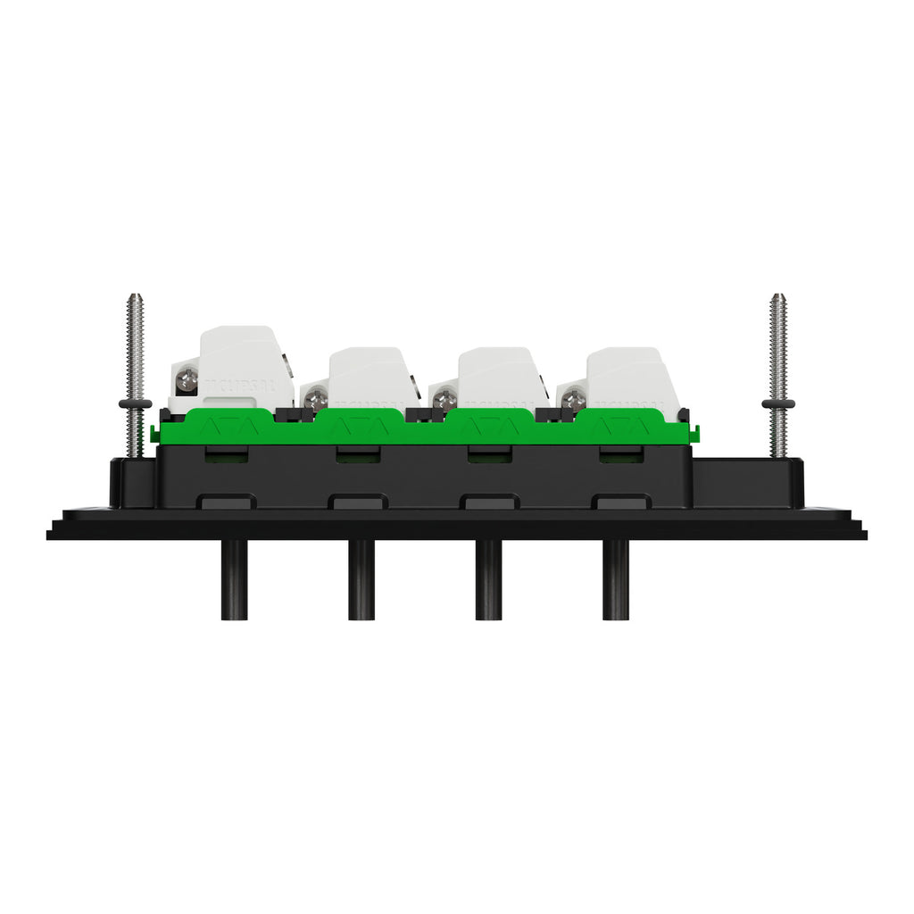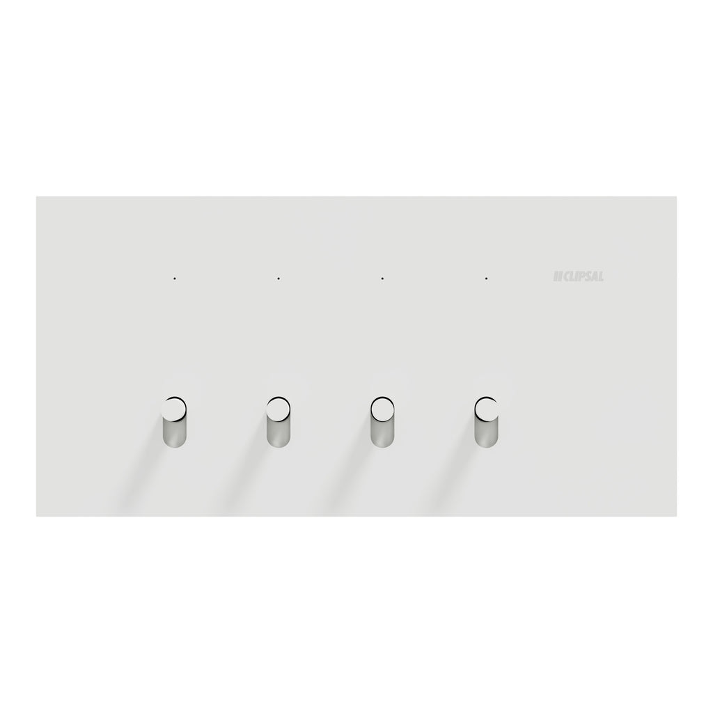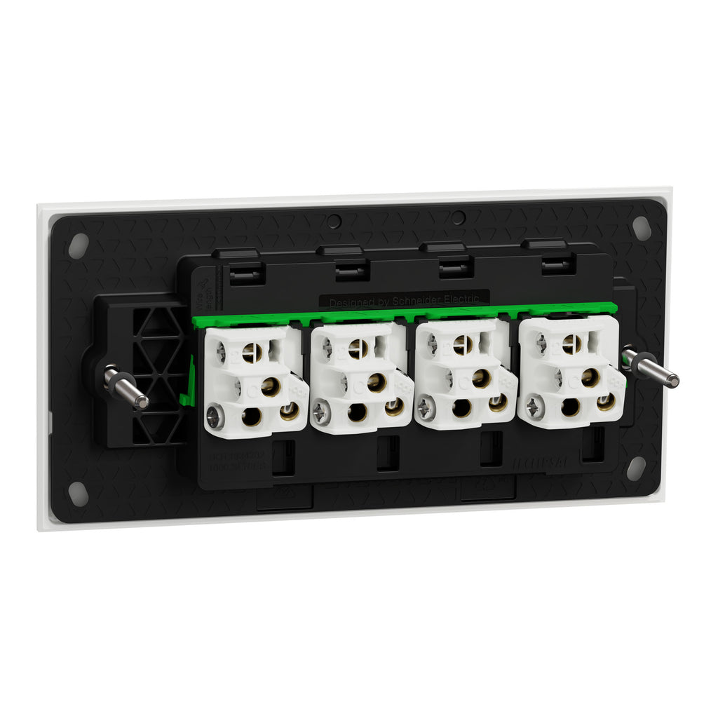 The Clipsal Solis T Series switch is designed to meet the needs of residential, commercial, and hotel applications. This 4-gang toggle switch offers convenient 1-pole 1/2-way control. The rated current is 20A/16AX and the rated operational voltage is 230/240VAC. The device comes with a screw terminal that offers a more secure connection for larger wires, reducing the risk of loose wires caused by external factors. This device allows for flush mounting. Screws are available for installation. It is intended to be installed horizontally only. The dimensions are (W) 148mm x (H) 74mm x (D) 56mm, and the embedding depth is 41mm. Discover the perfect fit with a 120mm fixing center and 3.6mm thickness for seamless integration into your projects. The color of the product is ebony aluminium. Its operating temperature is from 0°C to 45°C. The Clipsal Solis range now offers a choice of contemporary white and black finishes for modern home spaces. Create aesthetically pleasing electrical designs that complement your style.
