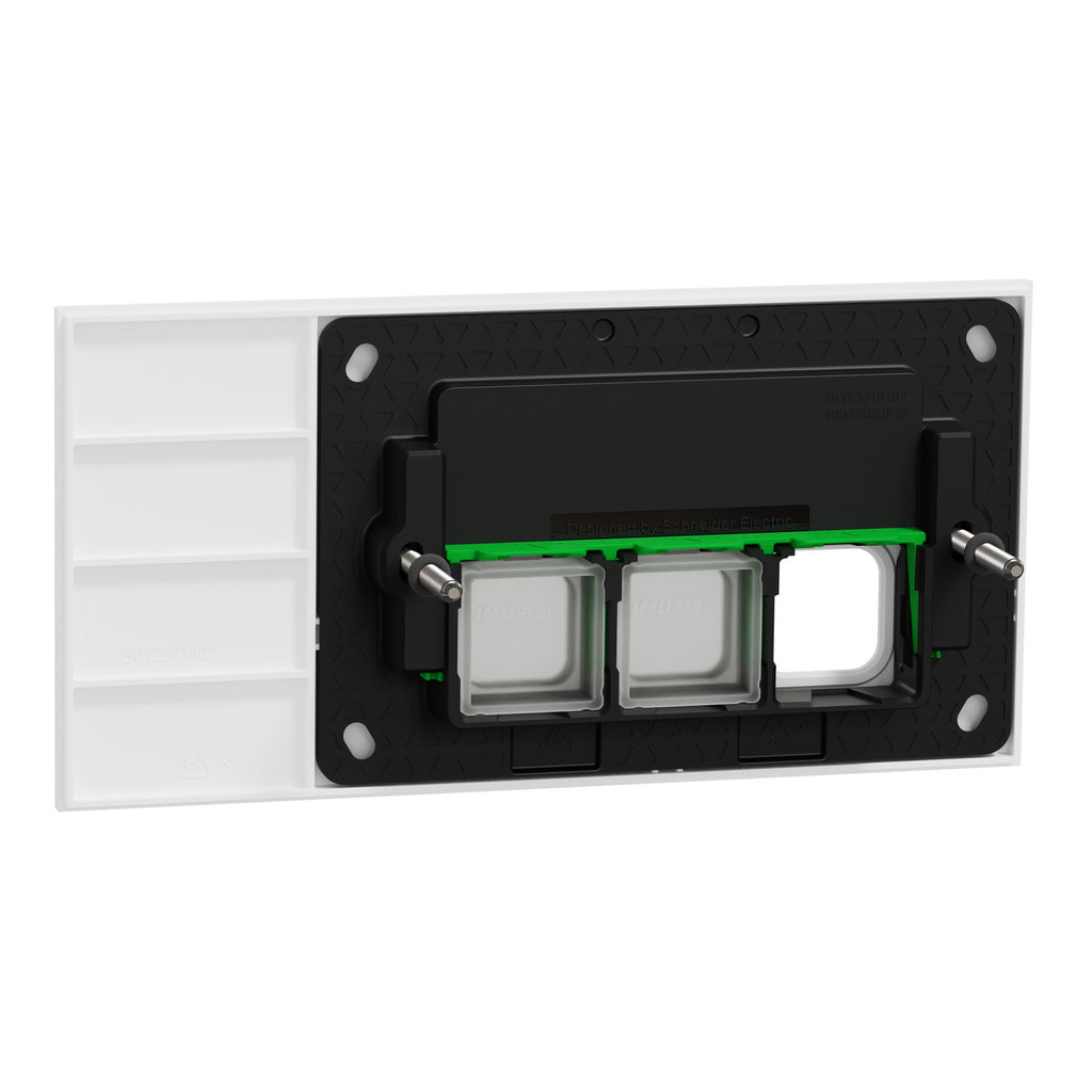 The versatile Clipsal Solis grid plate, complete with a cover frame, is perfect for residential, commercial, and hotel settings. This cover frame has been specifically designed to fit a configuration of 3 gangs. The installation process has been made easier with the provision of screws. It is intended to be installed horizontally only. The dimensions are (W) 148mm x (H) 75mm x (D) 45.5mm. Discover the perfect fit with a 84mm fixing center and 4.5mm thickness for seamless integration into your projects. The color of the product is matt black. The Clipsal Solis range now offers a choice of contemporary white and black finishes for modern home spaces. Create aesthetically pleasing electrical designs that complement your style.
