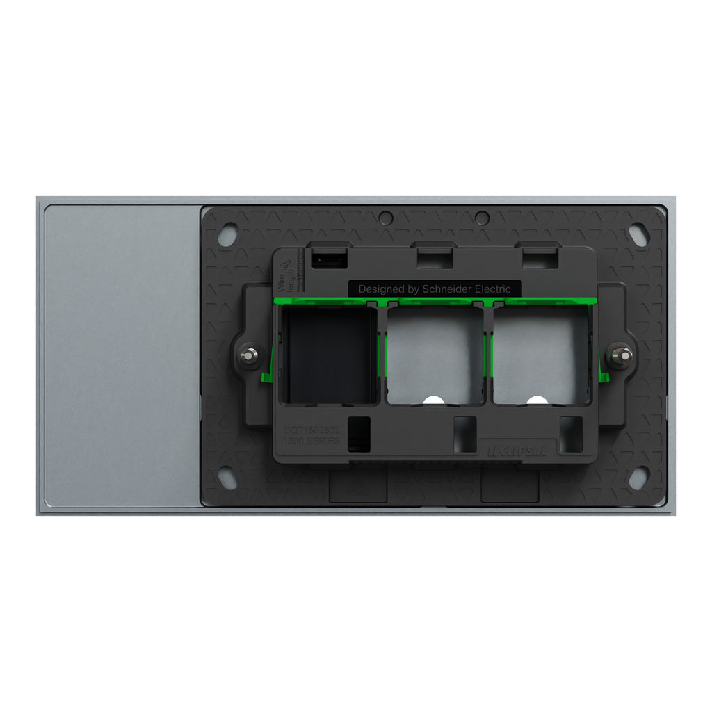 The versatile Clipsal Solis T Series grid plate, complete with a cover frame, is perfect for residential, commercial, and hotel settings. This cover frame has been specifically designed to fit a configuration of 2 gangs. The installation process has been made easier with the provision of screws. It is intended to be installed horizontally only. The dimensions are (W) 148mm x (H) 75mm x (D) 45.5mm. Discover the perfect fit with a 84mm fixing center and 4.5mm thickness for seamless integration into your projects. The color of the product is platinum. Choose from modern high-end finishes such as ceramic white, living brass, and recycled aluminum in platinum or ebony for contemporary home spaces with the Clipsal Solis T Series range. Create aesthetically pleasing electrical designs that complement your style.