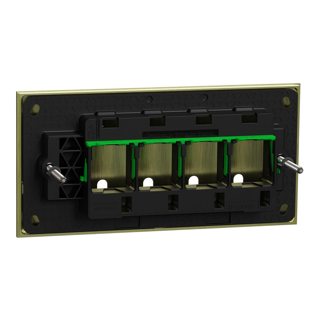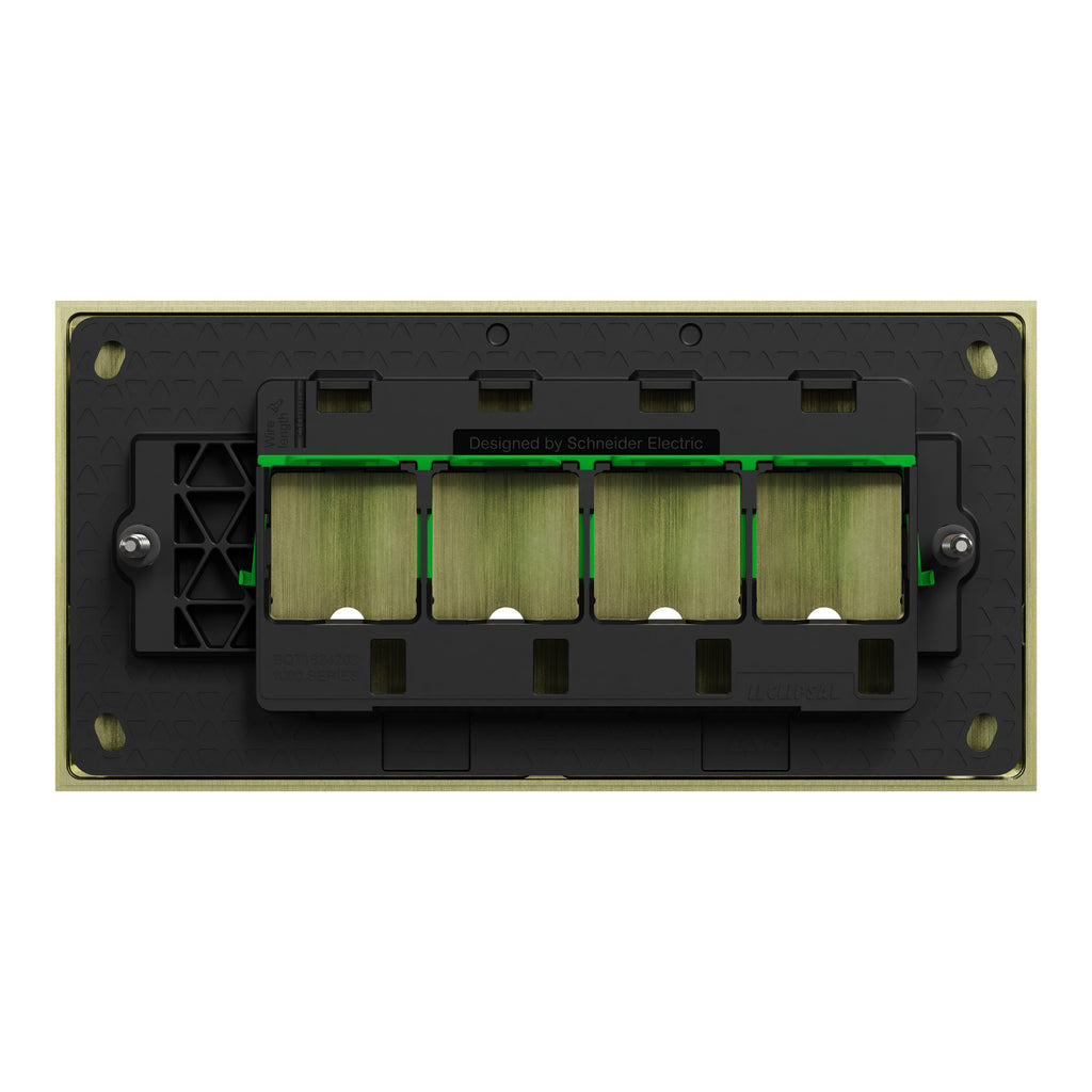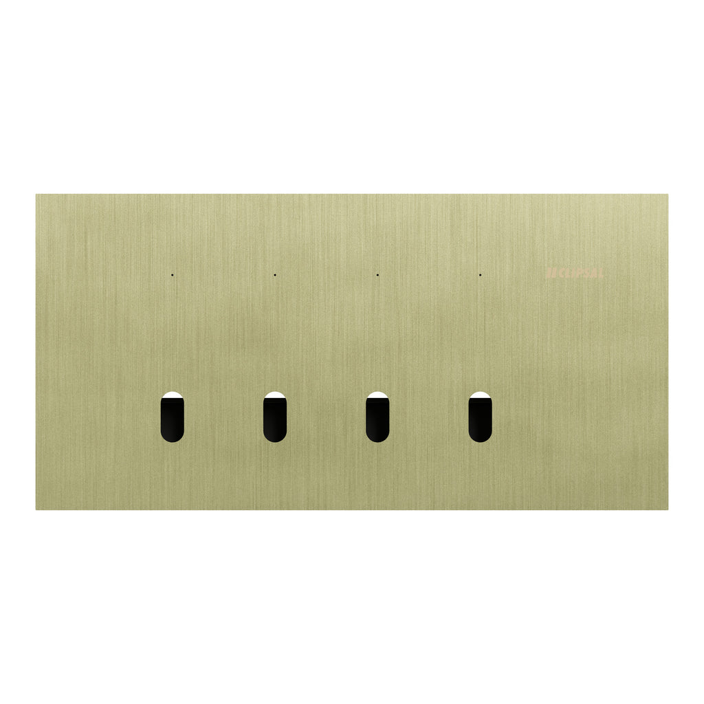 The versatile Clipsal Solis T Series grid plate, complete with a cover frame, is perfect for residential, commercial, and hotel settings. This cover frame has been specifically designed to fit a configuration of 4 gangs. The installation process has been made easier with the provision of screws. It is intended to be installed horizontally only. The dimensions are (W) 148mm x (H) 75mm x (D) 45.5mm. Discover the perfect fit with a 120mm fixing center and 4.5mm thickness for seamless integration into your projects. The color of the product is living brass. Choose from modern high-end finishes such as ceramic white, living brass, and recycled aluminum in platinum or ebony for contemporary home spaces with the Clipsal Solis T Series range. Create aesthetically pleasing electrical designs that complement your style.