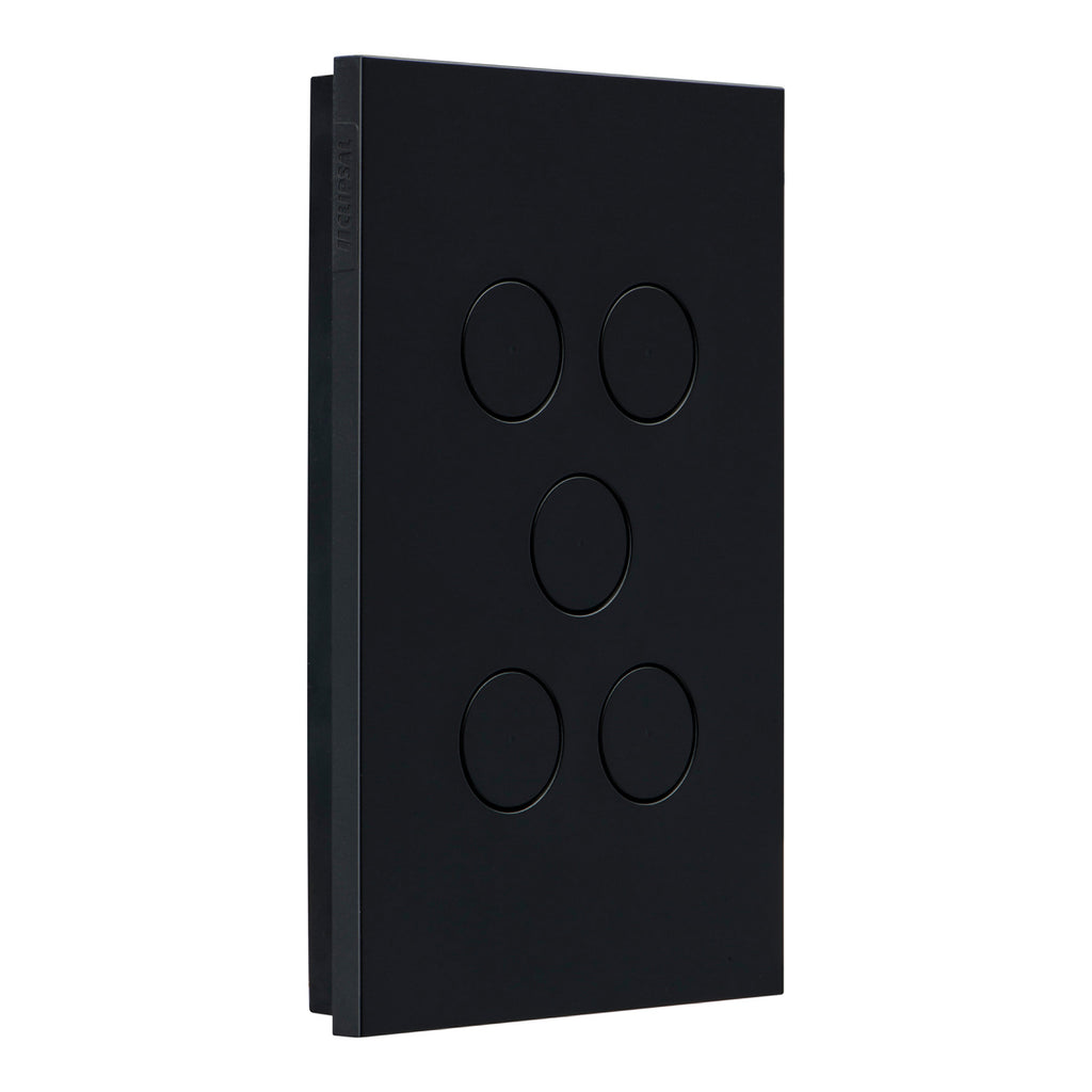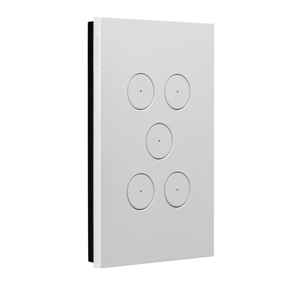 If you need to activate five loads from one switch plate, look no further than the Saturn Zen 5 Gang Push Button Switch. The 250V, 16AX/20A switch has LED indicators to let you know when the switch is active, or to help you find the switch in the dark. The push buttons can also be configured for one or two way switching.