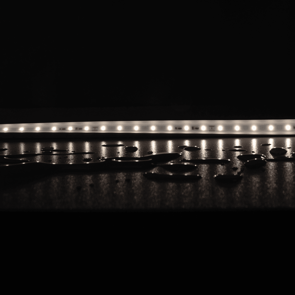 Available in 3000k, 4000k or 5000k. 75-85 lumens per watt. Strip is also dimmable. 100mm IP Rating IP66