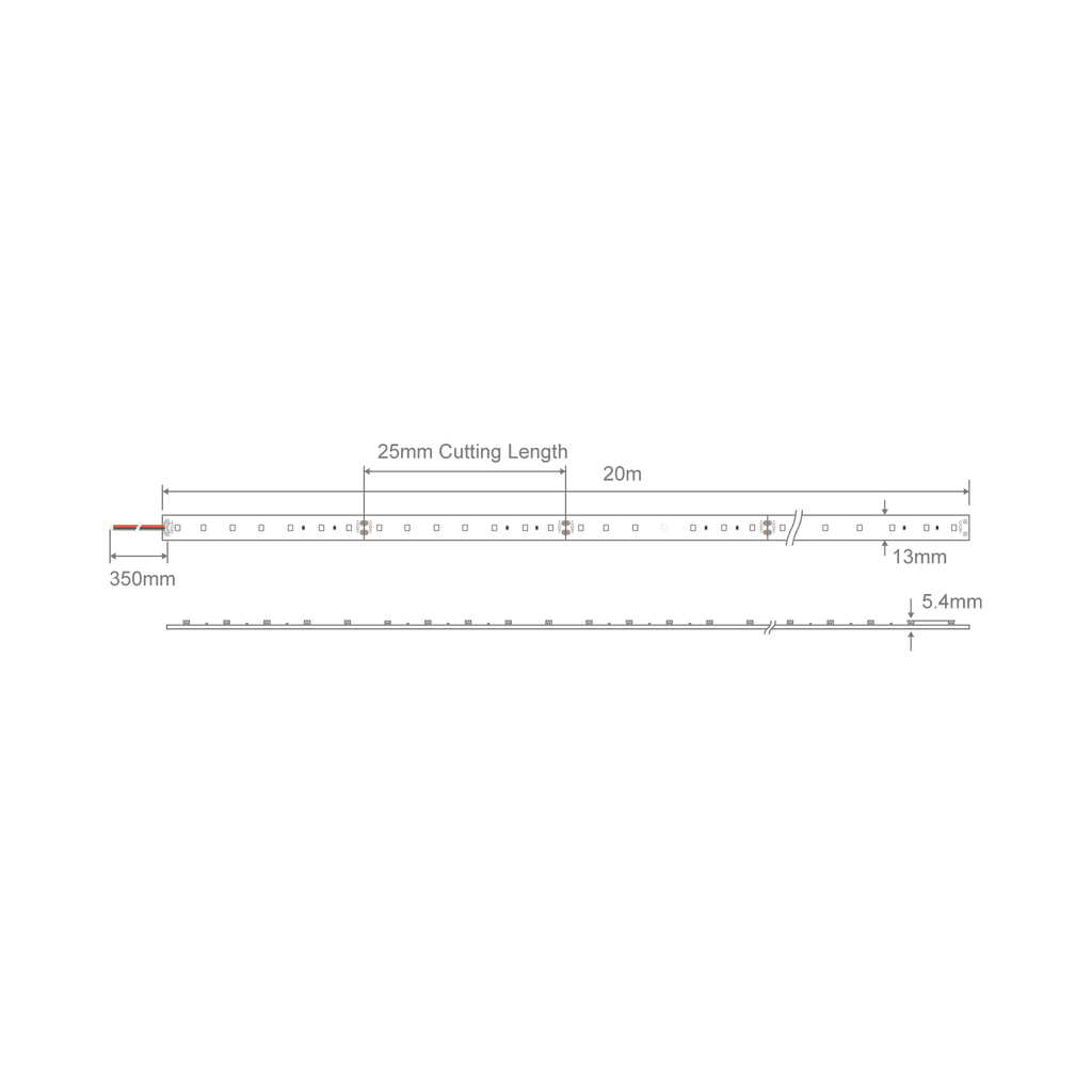 Max run is 20m with single tail & driver. Max run is 40m with tail & driver each end. 50mm cutting increments. Available in 3000k, 4000k or 5000k. 100-110 lumens per watt. Also available in IP54. Strip is also dimmable. 25mm IP Rating IP67