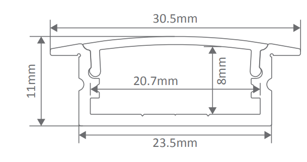 Introducing the LP-2410-RC mounting profile system. The LP-2410-RC is specifically designed for the Domus range of LED strip lighting. This aluminium mounting profile system incorporated extruded profile complete with a flat opal PMMA diffuser. The key features of the LP-2410-RC is the ability to not only conceal the LED strip lighting but also keep the strip lighting linear. Also, the LP-2410-RC keeps LEDs free from foreign objects and vapours which may damage the LEDs. A simple and shallow yet very contemporary LED recess mounted profile ideally suited to under bench mounting, wardrobes or laundry applications were minimal mounting requirement are needed.