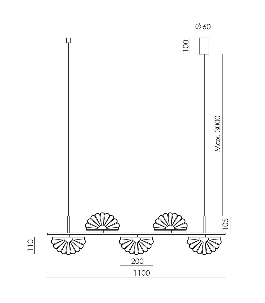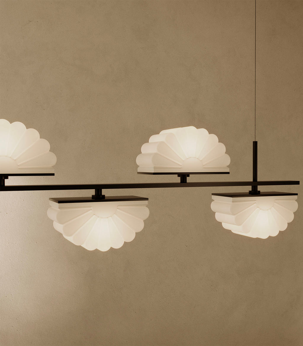 Its five gracefully arched shades create a rhythmic flow, balancing soft curvature with structured symmetry.