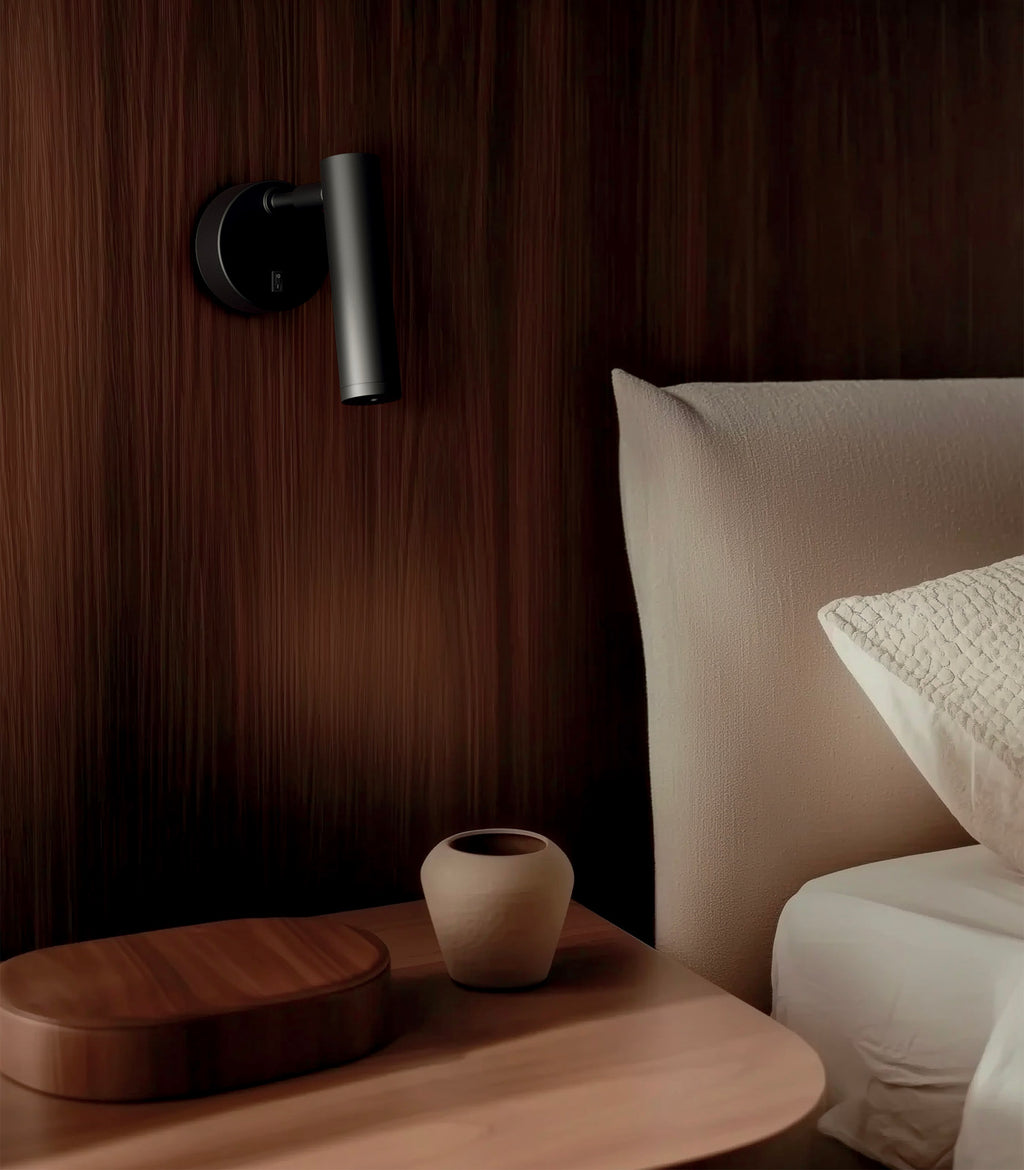 Maru Wall Light was designed by JF Sevilla for Aromas Del Campo minimalist indoor spotlight that can be adjusted to the desired angle. The Maru collection comes in two finish options either the black/black or the black/brass allowing for a bold yet elegant appearance for all your lighting needs.