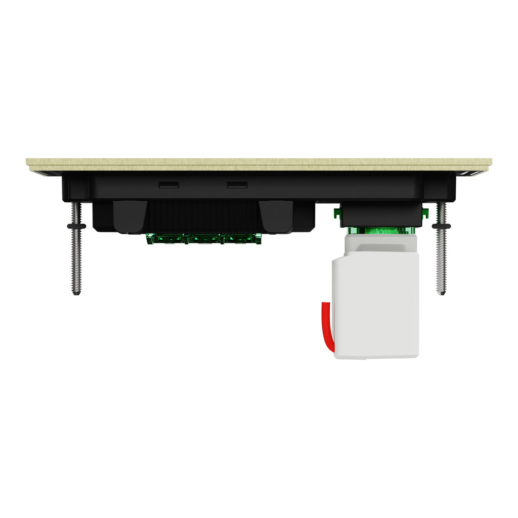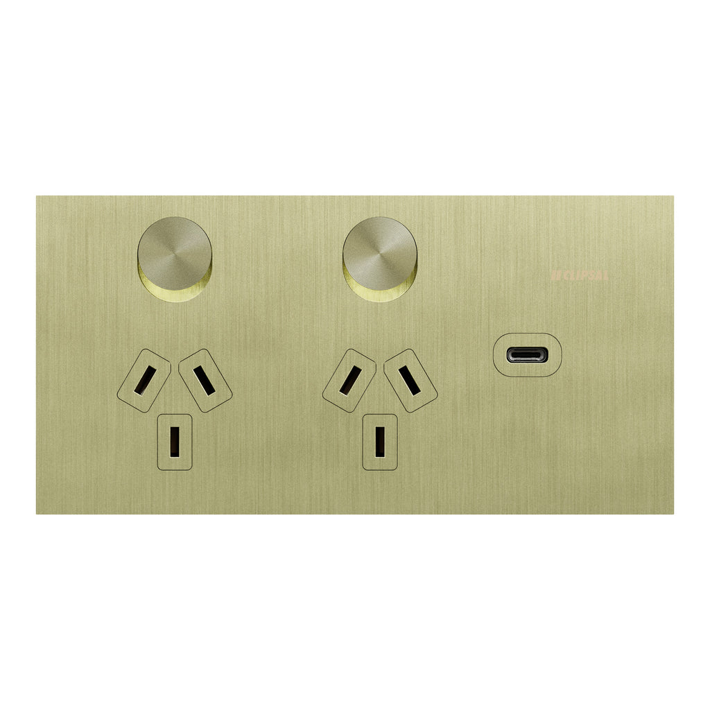 The Clipsal Solis double switched socket + USB charger is designed to meet the demands of residential, commercial, and hotel applications. This socket outlet is designed to meet Australian/New Zealand standards and has a 2P + E pole configuration. The USB C charger can be plugged directly into the wall, eliminating the need for an external charger. The rated current is 10A and the rated operational voltage is 230/240VAC. The device comes with a screw terminal that offers a more secure connection for larger wires, reducing the risk of loose wires caused by external factors. This device allows for flush mounting. Screws are available for installation. The socket has a shutter that prevents the insertion of objects other than plugs for safety purposes. It is intended to be installed horizontally only. The dimensions are (W) 148mm x (H) 74mm x (D) 68.9mm, and the embedding depth is 65mm. Discover the perfect fit with a 120mm fixing center and 3.9mm thickness for seamless integration into your projects. The color of the product is ebony aluminium. Its operating temperature is from 0°C to 45°C. Choose from modern high-end finishes such as ceramic white, living brass, and recycled aluminum in platinum or ebony for contemporary home spaces with the Clipsal Solis T Series range. Create aesthetically pleasing electrical designs that complement your style.