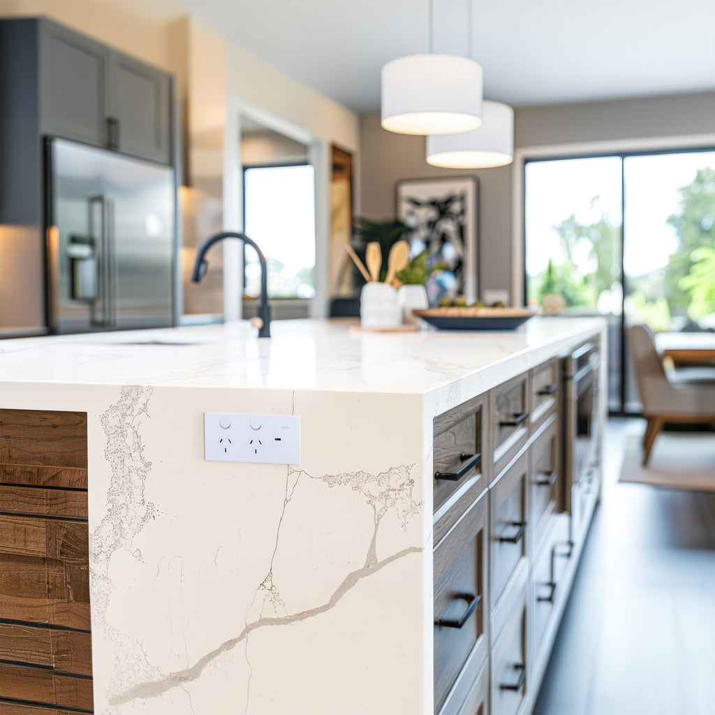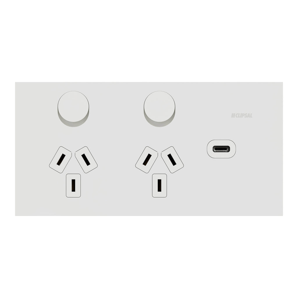 Clipsal Double Switch Power Point, Clipsal Solis T Series, with USB C Charger, Horizontal Mount Ebony Aluminium/ White Ceramic 230V-240V- 1025USBC-EA, 1025USBC-WC