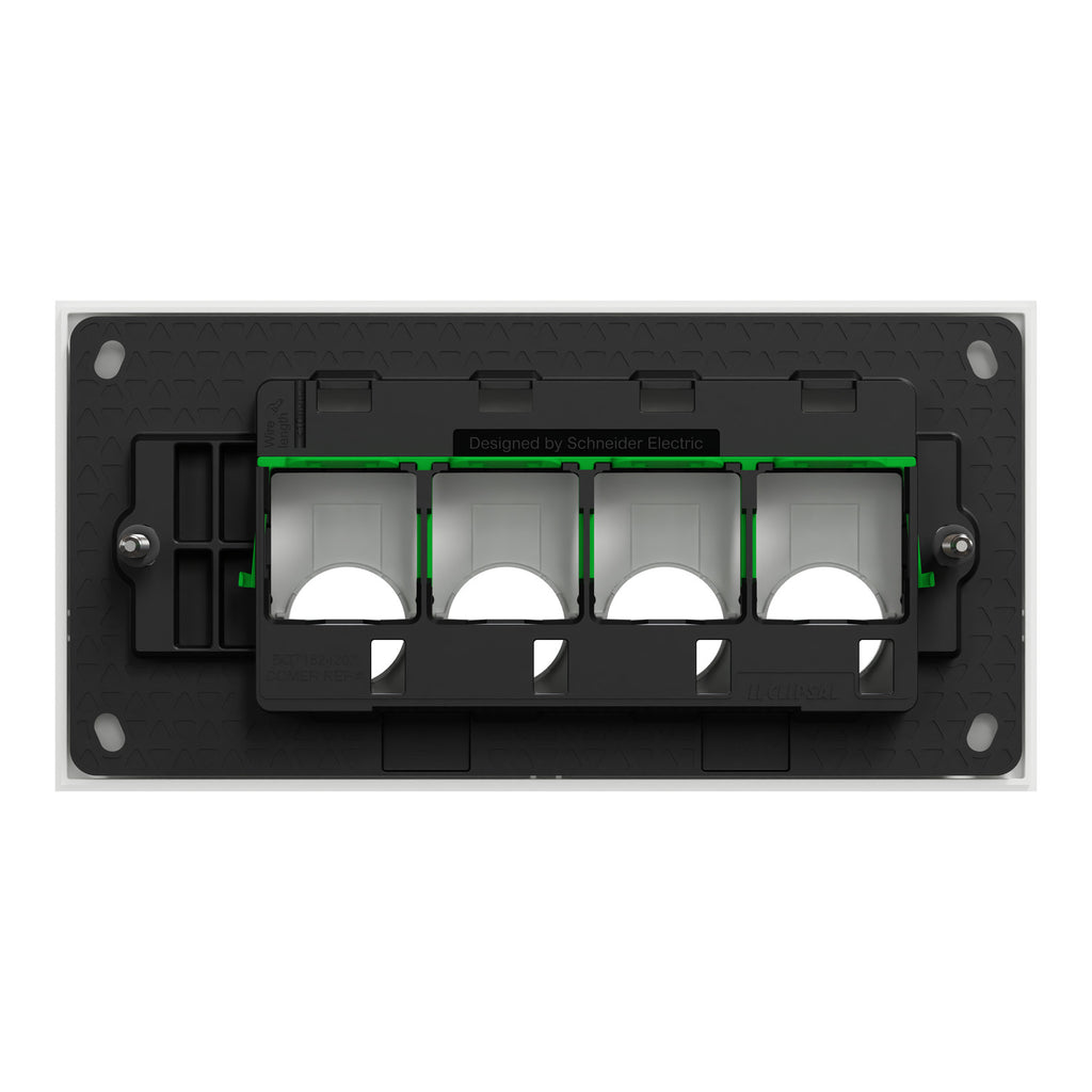 The versatile Clipsal Solis grid plate, complete with a cover frame, is perfect for residential, commercial, and hotel settings. This cover frame has been specifically designed to fit a configuration of 4 gangs. The installation process has been made easier with the provision of screws. It is intended to be installed horizontally only. The dimensions are (W) 148mm x (H) 75mm x (D) 45.5mm. Discover the perfect fit with a 120mm fixing center and 4.5mm thickness for seamless integration into your projects. The color of the product is matt white. The Clipsal Solis range now offers a choice of contemporary white and black finishes for modern home spaces. Create aesthetically pleasing electrical designs that complement your style.