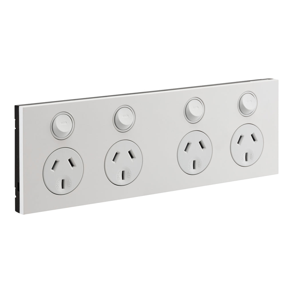 Four switched power points give you access to the power you need. Perfect for the office, behind the television and in the kitchen where you can never have too many power outlets. The 10A, 250V Saturn Zen Quad Switched power point looks good and performs even better.