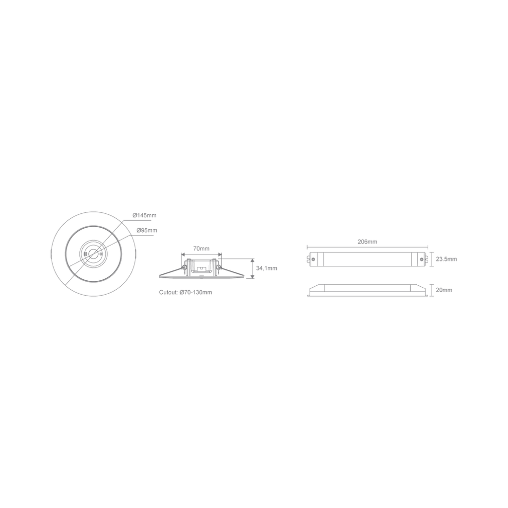 | #66038 | LiFePO4 battery type | D40 | Recessed | Emergency Light | 145mm | 145mm |