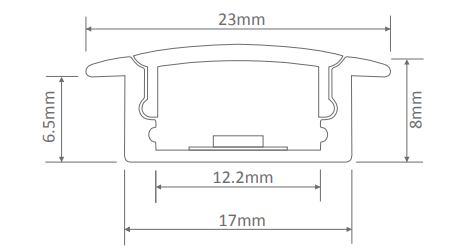 Introducing the LP-1707-RC mounting profile system. The LP-1707-RC is specifically designed for the Domus range of LED strip lighting. This aluminium mounting profile system incorporated extruded profile complete with a flat opal PMMA diffuser. The key features of the LP-1707-RC is the ability to not only conceal the LED strip lighting but also keep the strip lighting linear. Also, the LP-1707-RC keeps LEDs free from foreign objects and vapours which may damage the LEDs. A simple and shallow yet very contemporary LED recessed mounted profile ideally suited to under bench mounting, wardrobes or laundry applications were minimal mounting requirement are needed.
