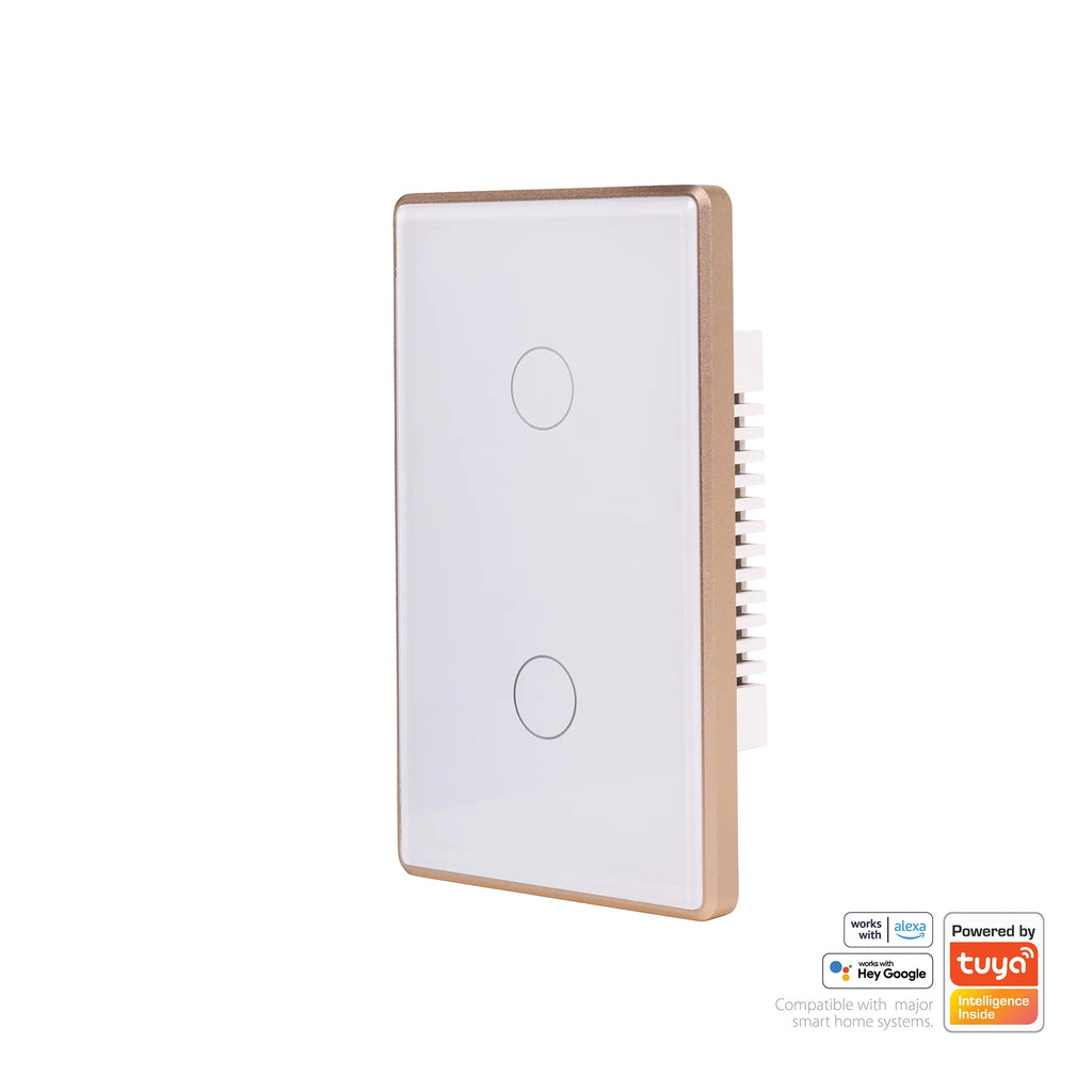 - 2 Gang White with Gold Trim Wifi Wall Switch