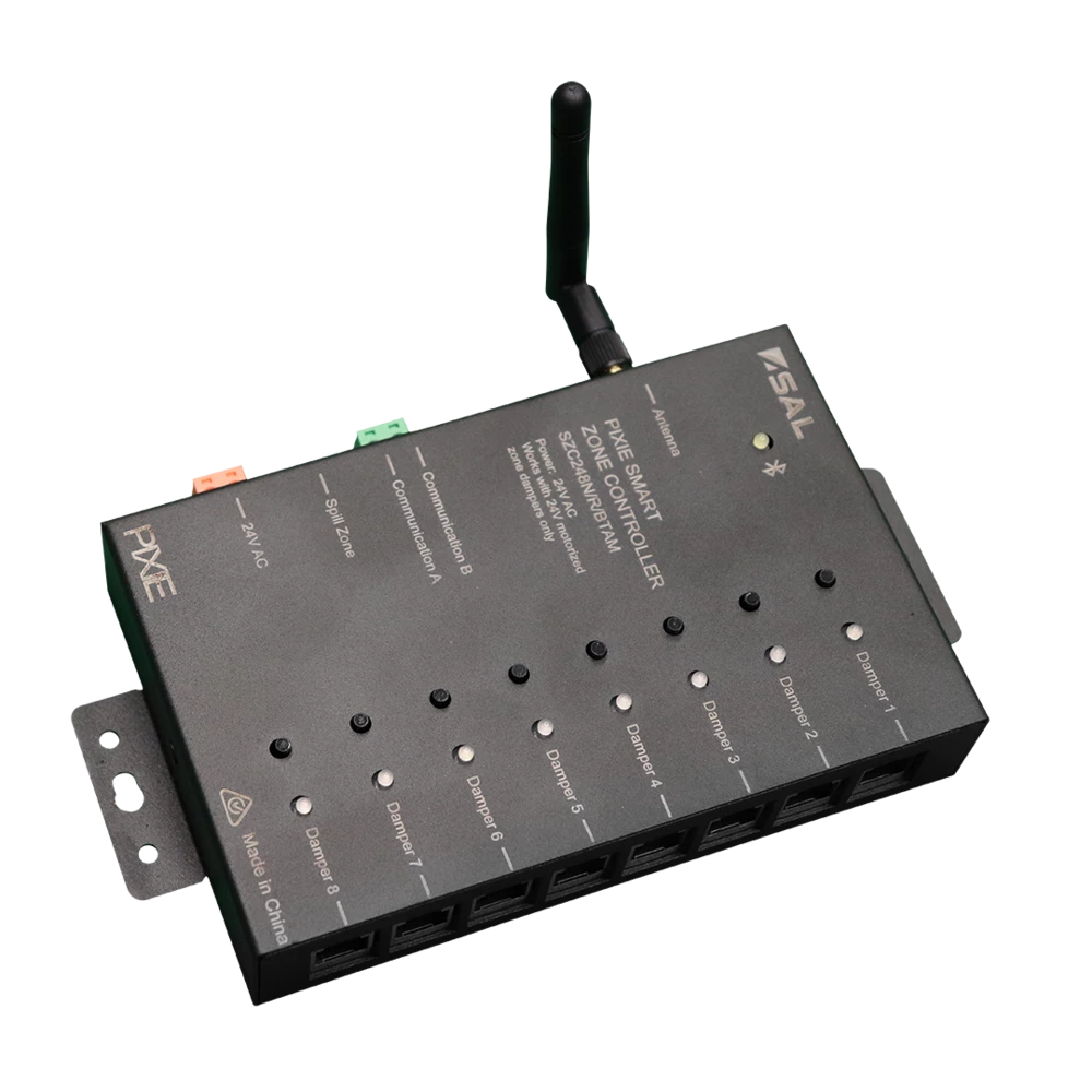 PIXIE MASTER DEVICE – Smart HOME 8-channel Bluetooth® mesh 24V AC damper controller with spill-zone and on-device control buttons