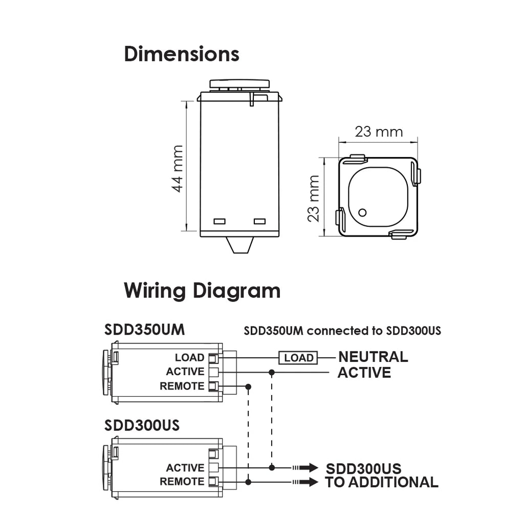 • Dimmer Type - Secondary switch dimming by SDD350UM only